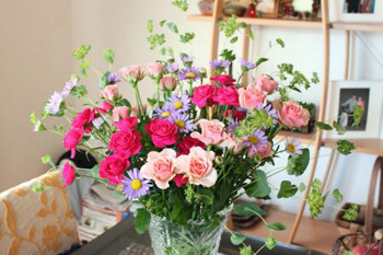 私はお花屋さんよりも、ジョイフル本田でよく花束を買います