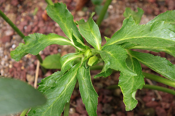 我が家では20株ほどのクリスマスローズを育てていますが、いつも先陣を切って開花するのはこの子達です。