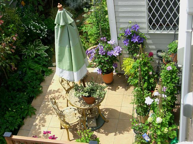 ちなみにコチラは家の庭のテラスの一角。真ん中にガーデンテーブルとパラソルを置いて、天気のいい時にはここでダンナ様とランチを食べることも・・・昼間っからビールも進む、進む(笑)