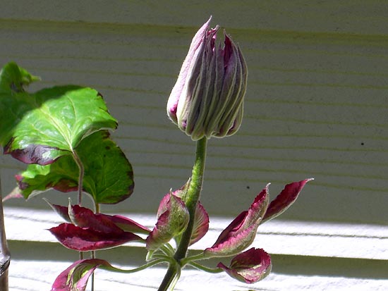 去年及川さんから通販で手に入れたのですが、苗がきてから数日後、近くのクレマチスフェアに出かけた際母が何種類か苗を買ったらおまけにレッドスターの苗をくれたんです。