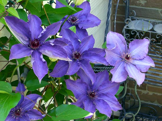 手塩に育てたクレマチス達とのご対面、です。うちの庭には数十種類のクレマチスがあるのですが、日を追うごとに次々といろんな種類が咲き始めて、最近は何時間庭で過ごしても飽きません(笑)