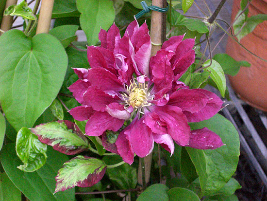 ダリアのような見事な八重咲きで幾重にも重なった花びらがとってもゴージャス!ベルオブ・ウォッキングと並んで最も好きなクレマチスの一つです。